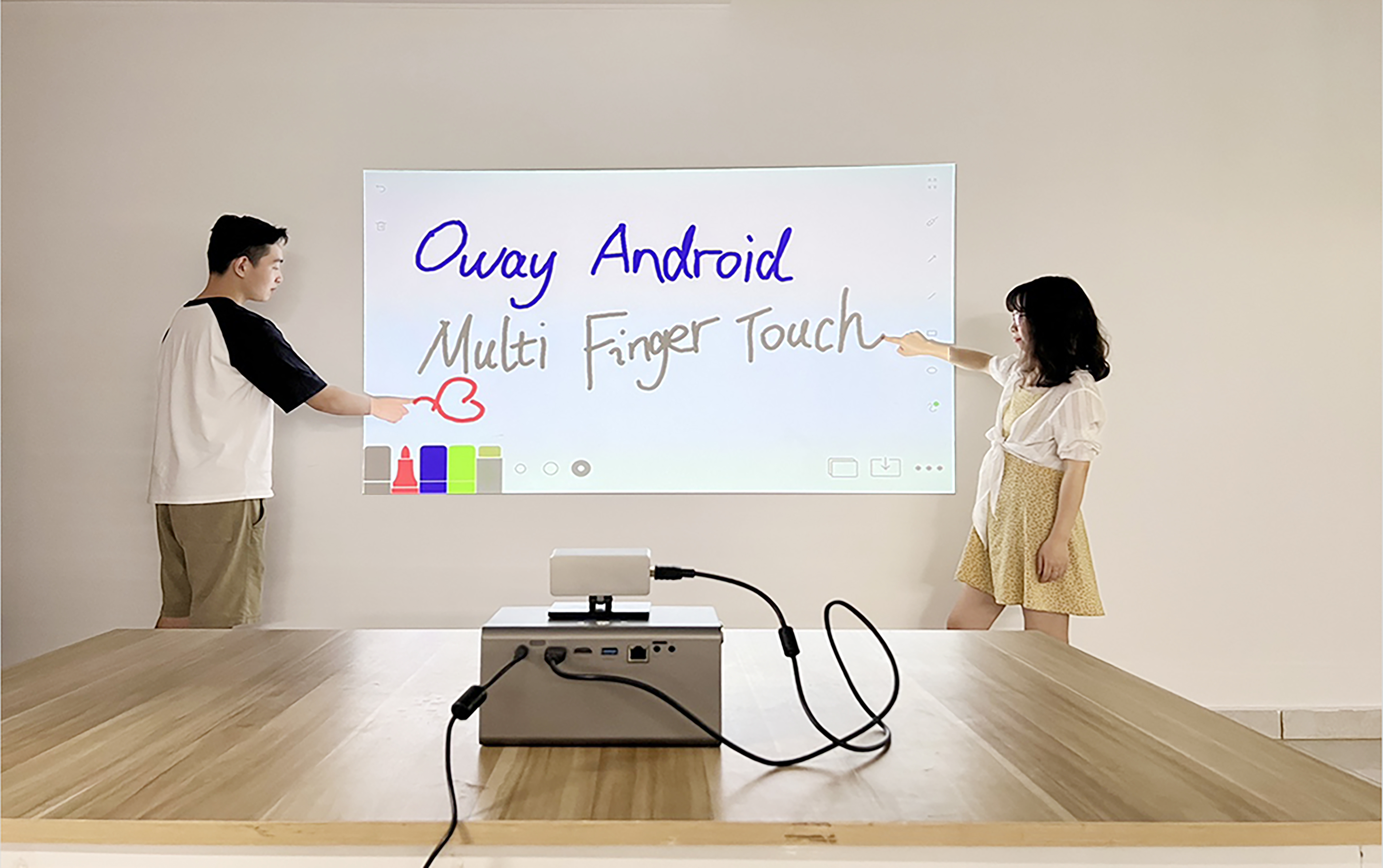 OWAY 成立于 2009 年,推出了一款全新的创新交互式投影仪。 在全球专家的见证下,第一台真正的安卓多点触控光电交互模块和交互投影仪在中国长沙推出。